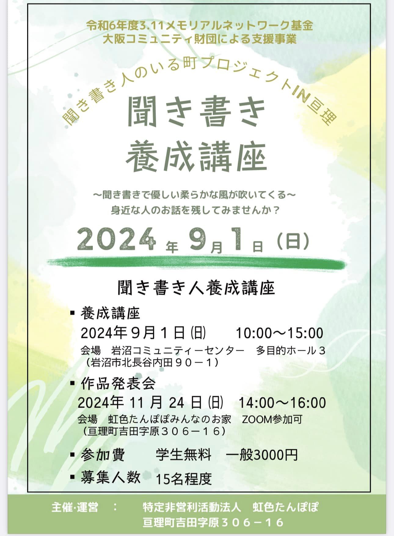 聞き書き養成講座のお知らせ