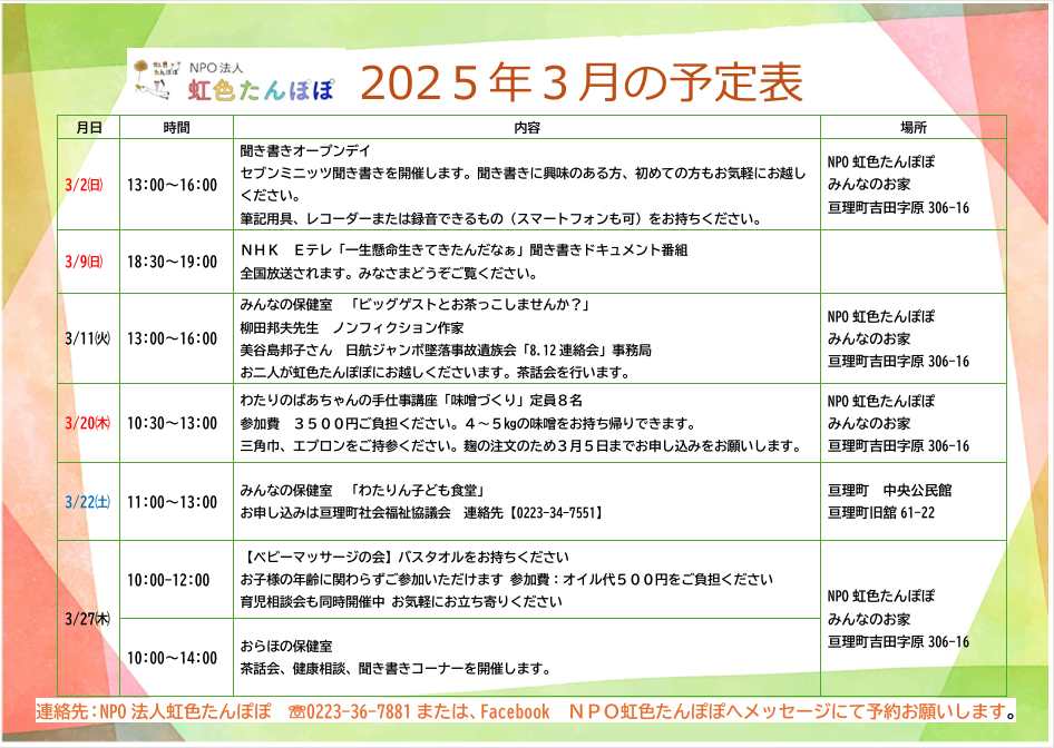 お二人が虹色たんぽぽにお越しくださいます。茶話会を開催いたします。
