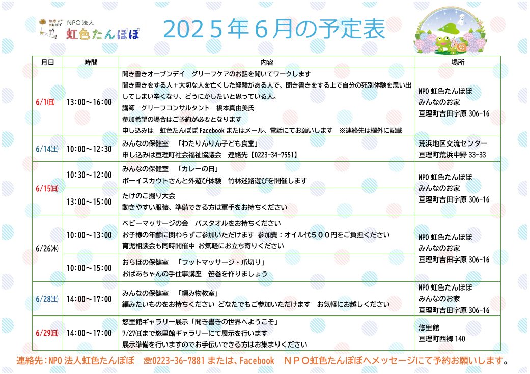申し込みは、虹色たんぽぽFacebookまたはメール、電話にてお願いします。
