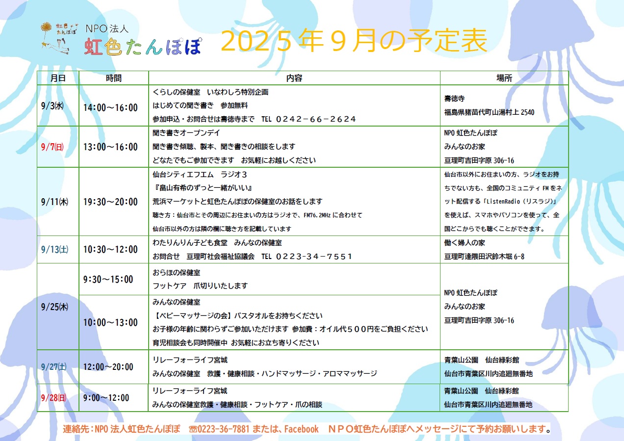 8月1日(金) 13:00~16:00 みんなの保健室「茶話会」 どなたでもご参加できます お気軽にお越しください。 8月2日(土) 13:00~17:00 聞き書きオープンデイ 聞き書き傾聴 […]